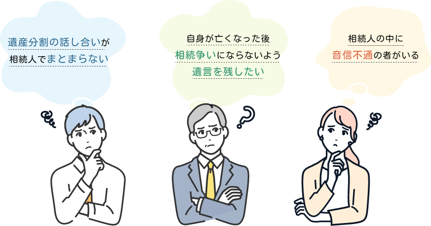 相続人の関係性や財産の種類など、個別の事情に寄り添った“争わない準備”を行います。
